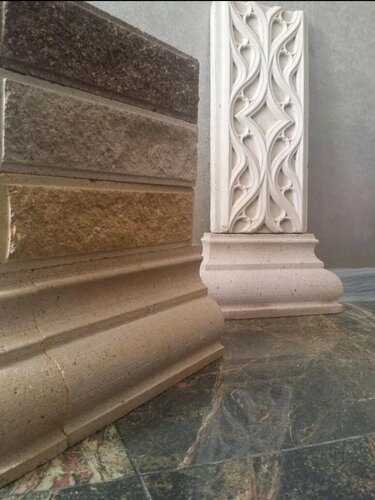 • В нашем ассортименте есть пиленная плитка и фигурные изделия: оконные обрамления, карнизы, русты и многое другое для вашего дизайна. Несомненно, это придаст вашему проекту уникальность.